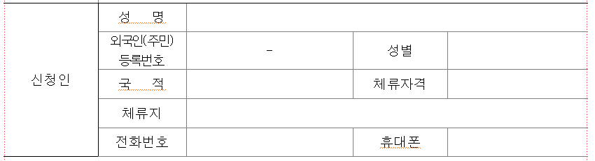 - 또는 성명, 외국인등록번호, 성별 , 국적 , 체류자격, 체류지, 전화번호 입력해주세요~