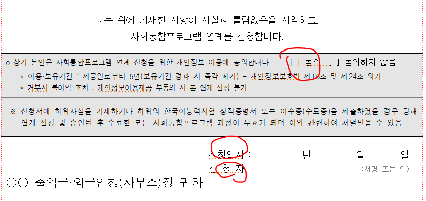 - 추자적으로 개인정보 동의해주시고 신청 날짜 작성후 이름 싸인 해주시면 완성됩니다.
