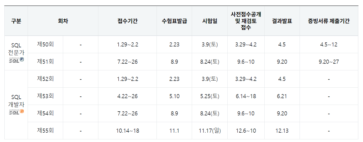 SQLD 시험일정